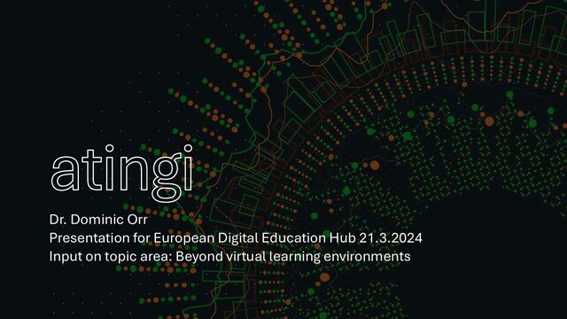Presentation for European Digital Education Hub 21.3.2024, which emphasises that any virtual learning environment can only contribute to the whole learning environment. Furthermore, when we are building a learning environment, as we do at atingi.org, we should take a realistic (albeit optimistic) view of the tension between big ideas and practical impact. So, even if we are product managers, it is important that we are not simply techno-solutionist in our view of our contribution to better teaching and learning.