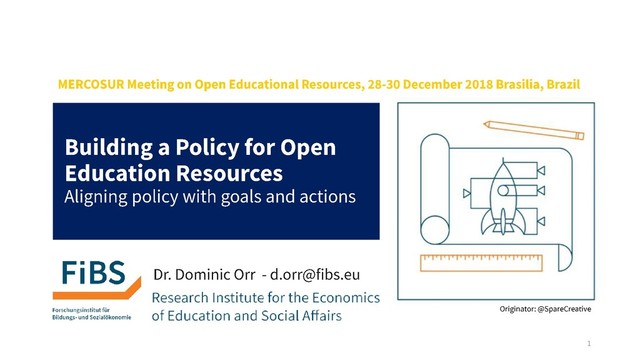 Presentation at the MERCOSUR Meeting on Open Educational Resources, 28-30 December 2018 Brasilia, Brazil. It provides an overview of the components necessary to formulate a comprehensive policy at institutional, national or even international levels. It particularly argues for focused policies, which are planned in multiple iterations and get more ambitious each time.