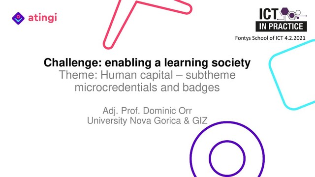Talking introducing the challenges in (higher) education and how alternative credentialling systems can play a role - especially badges and microcredentials. For the Fontys conference "ICT in practice" 2021 (https://www.ictinpractice.nl/).