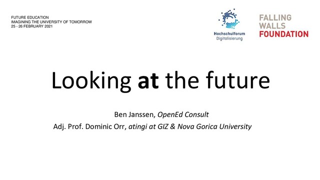 Presentation by Ben Janssen and myself at the Falling Walls & HFD conference entitled FUTURE EDUCATION - IMAGINING THE UNIVERSITY OF TOMORROW about looking at the current developments to extrapolitate to trends in the future, and about which role Falling Walls has in this.