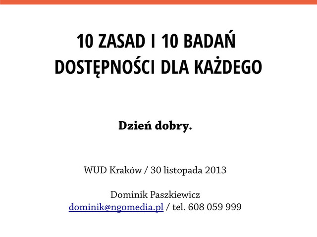 Każdy, kto bierze udział w tworzeniu sieci, jako projektant/ka, programista/tka czy redaktor/ka treści, powinien znać zasady dostępności. Naucz się 10 wytycznych dostępności oraz 10 badań, które możesz przeprowadzić samodzielnie. Dzięki dostępności zyskują wszyscy użytkownicy oraz właściciel serwisu. Za to bez dostępności, nie można mówić o jakości produktu cyfrowego. Przyjdź, poznaj zasady i metody badania, i twórz dostępne interfejsy oraz treści.