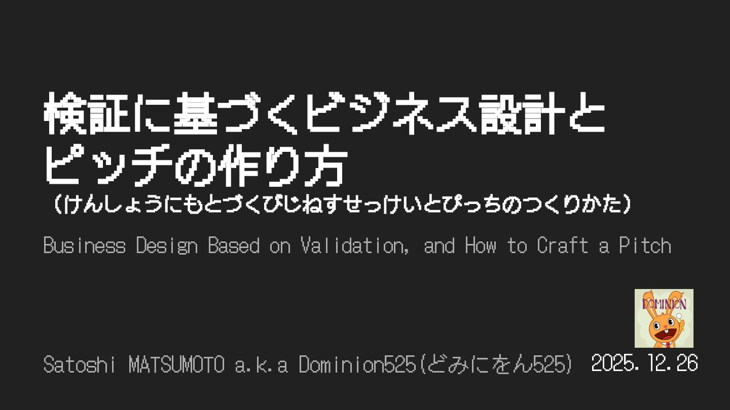 検証に基づくビジネス設計と ピッチの作り⽅ (けんしょうにもとづくびじねすせっけいとぴっちのつくりかた) Business Design Based on Validation, and How