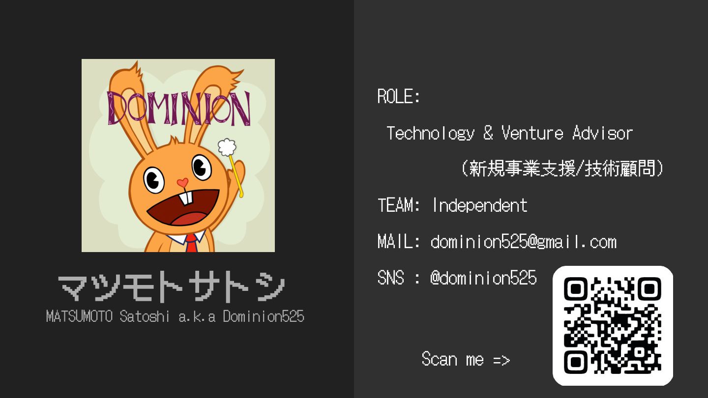 マツモトサトシ MATSUMOTO Satoshi a.k.a Dominion525 ROLE: Technology & Venture Advisor