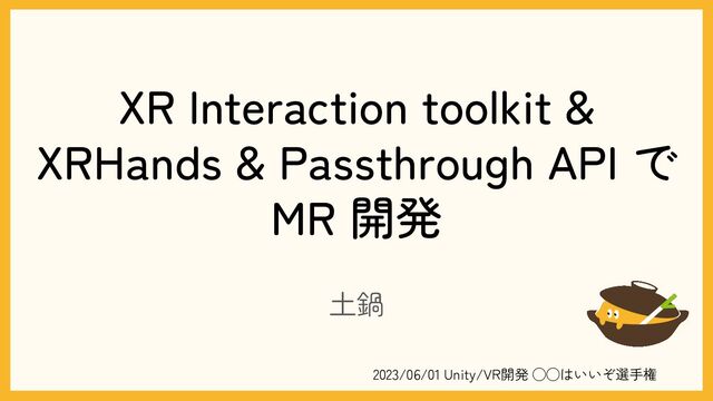 開発 土鍋 2023/06/01 Unity/VR開発 ◯◯はいいぞ選手権