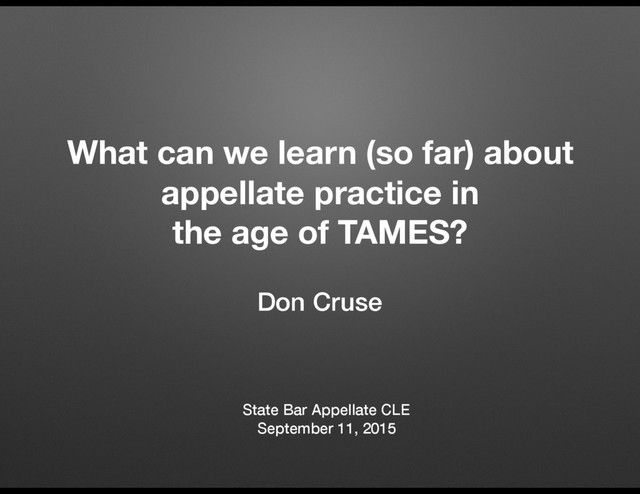 then keep rising fairly steadily 2011-2015: Excludes parental termination cases “Does a case pending longer give more information about the odds of a reversal?” The rate eventually crosses 50%