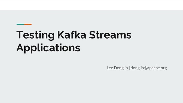 dependency ◦ org.apache.kafka:kafka-streams:${kafka.version}:test 2. Create EmbeddedKafkaCluster instance & Topics. 3. Run test by starting Kafka Streams instance. 4. Next slide!