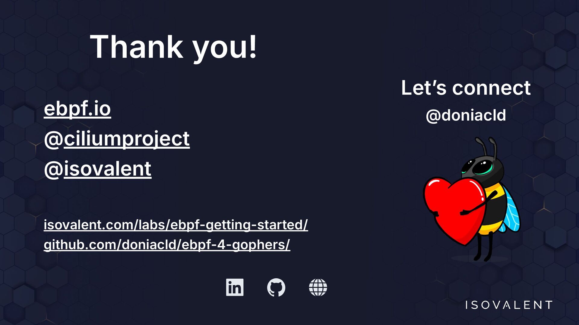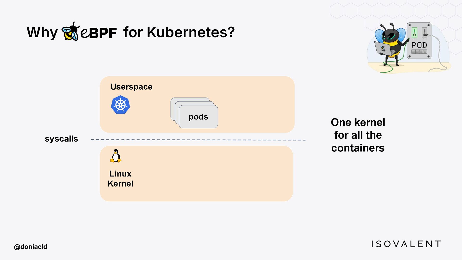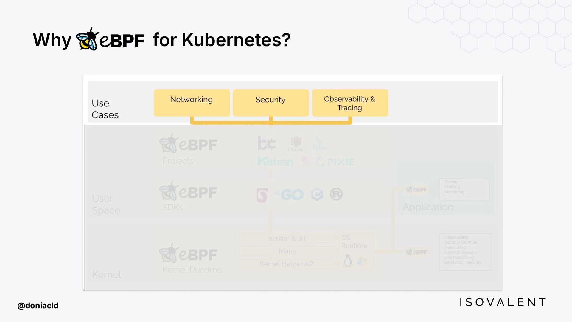 fast programs in the Linux kernel • You can use it for: ◦ 🔍 Tracing (e.g. file open events) ◦ 📊 Observability (e.g. counting packets by IP ◦ 🛡 Security (e.g. dropping packets with XDP and Tetragon) ◦ 🌐 Networking (e.g. packets routing with Cilium) • Go is the language of the cloud-native ecosystem • With libraries like cilium/ebpf, you can use Go to: ◦ Load eBPF programs & Interact with kernel data safely • Perfect fit for building Kubernetes CNI, agents, operators, and tools, etc