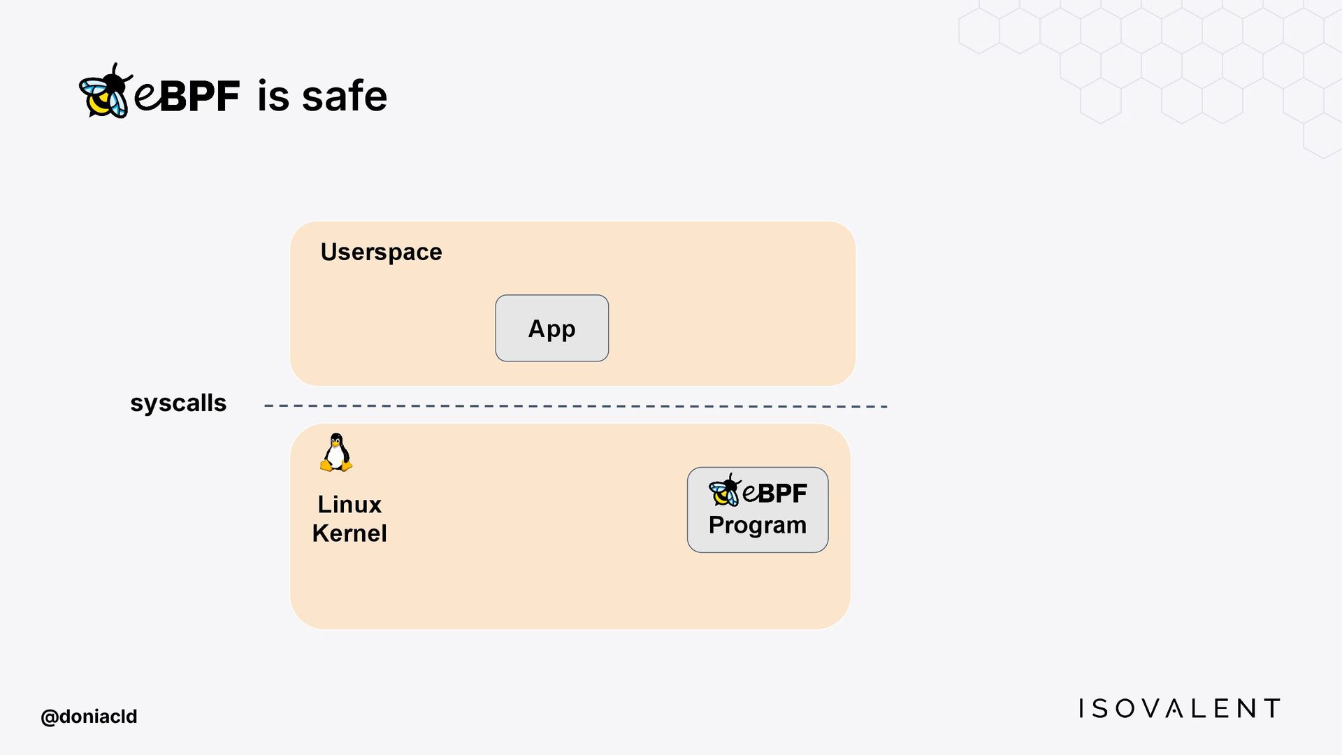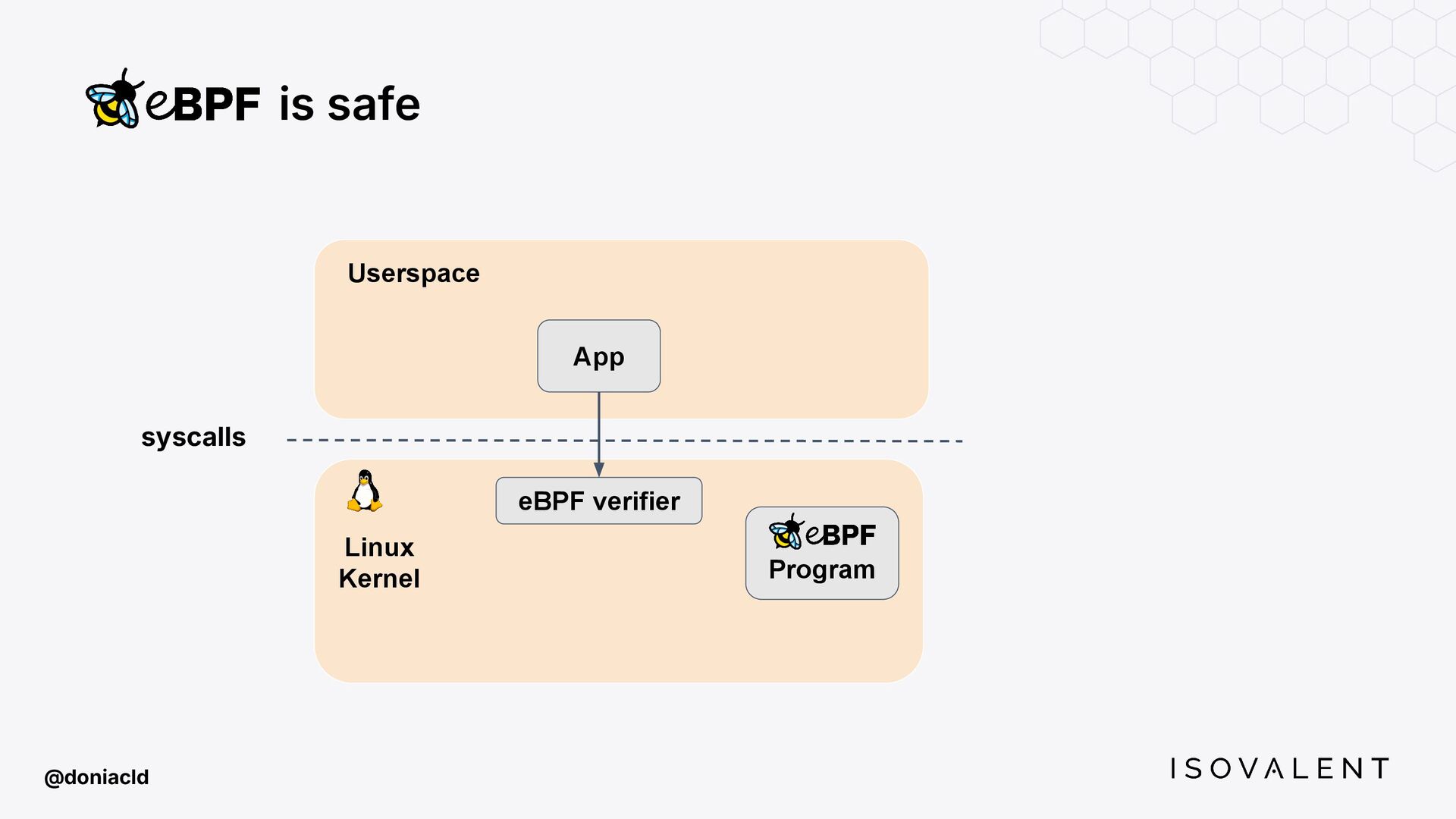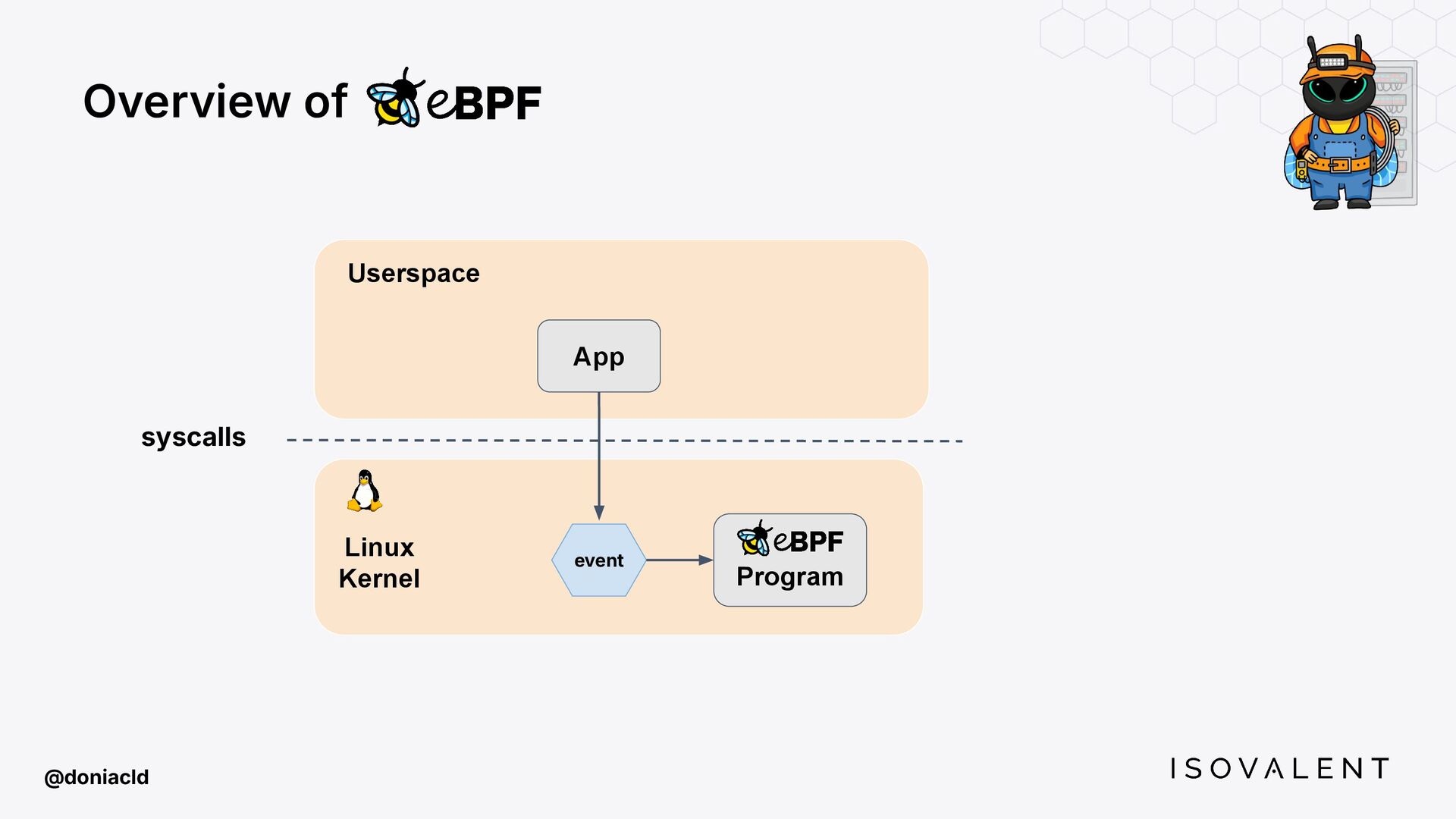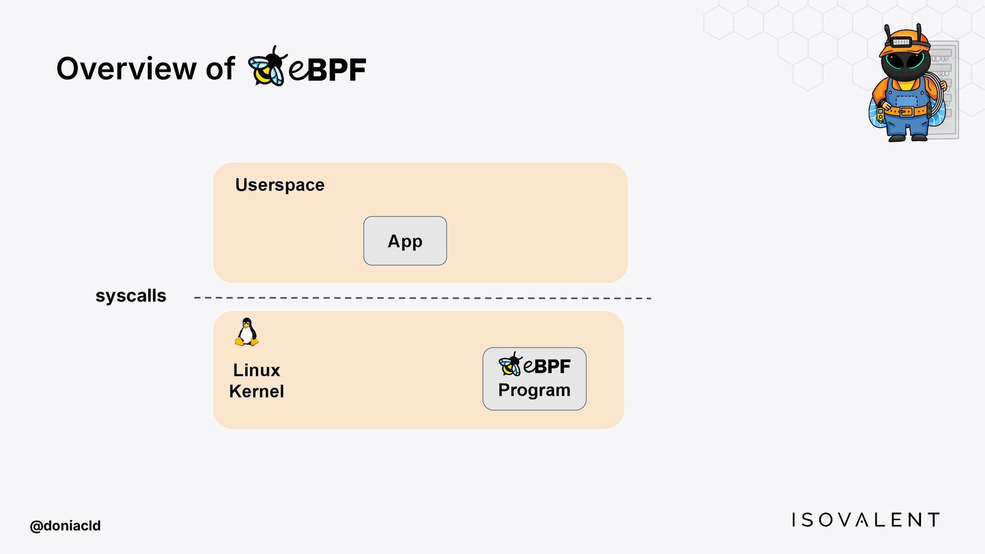 fast programs in the Linux kernel • You can use it for: ◦ 🔍 Tracing (e.g. file open events) ◦ 📊 Observability (e.g. counting packets by IP ◦ 🛡 Security (e.g. dropping packets with XDP ◦ 🌐 Networking (e.g. packets routing with Cilium)