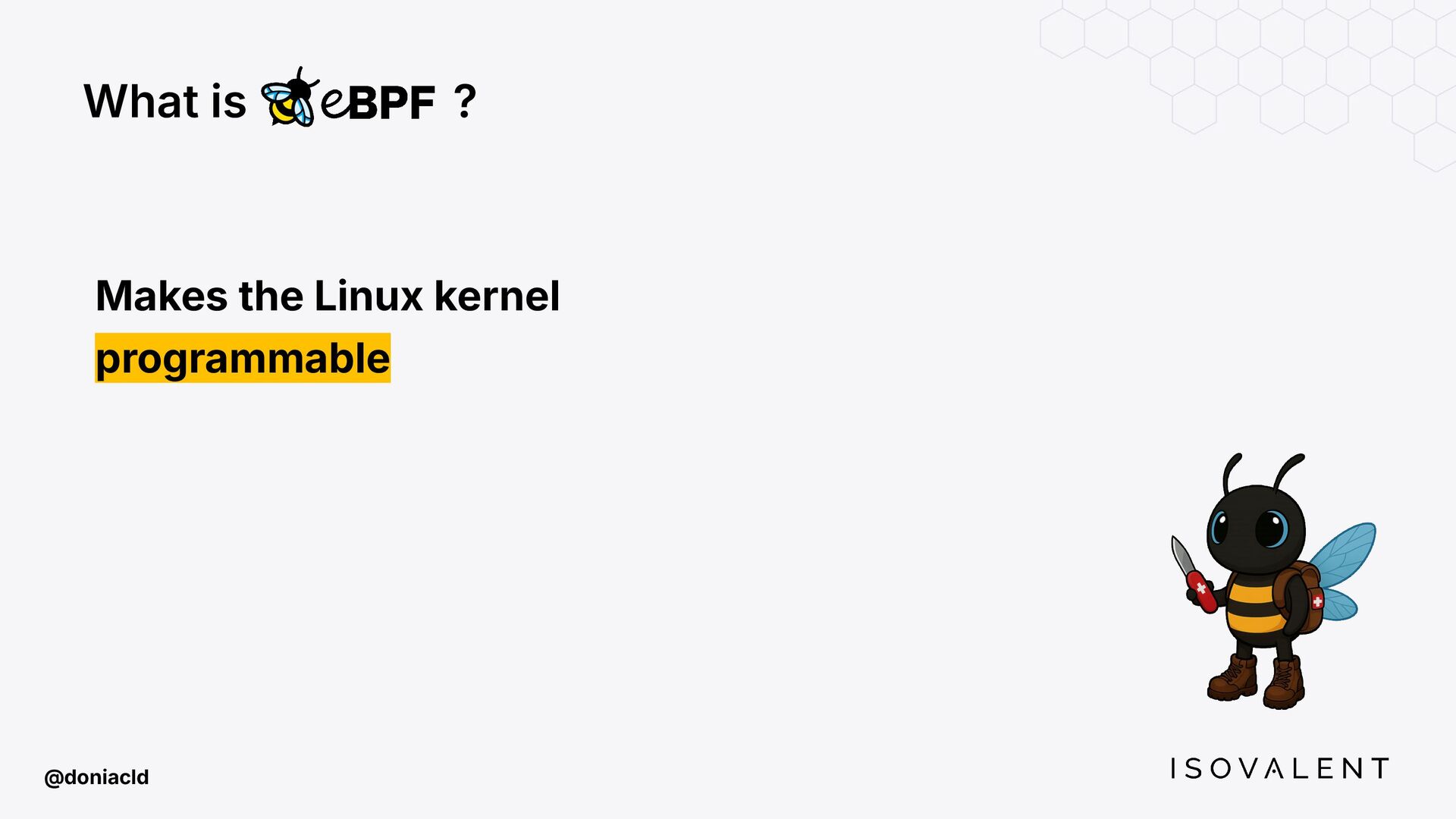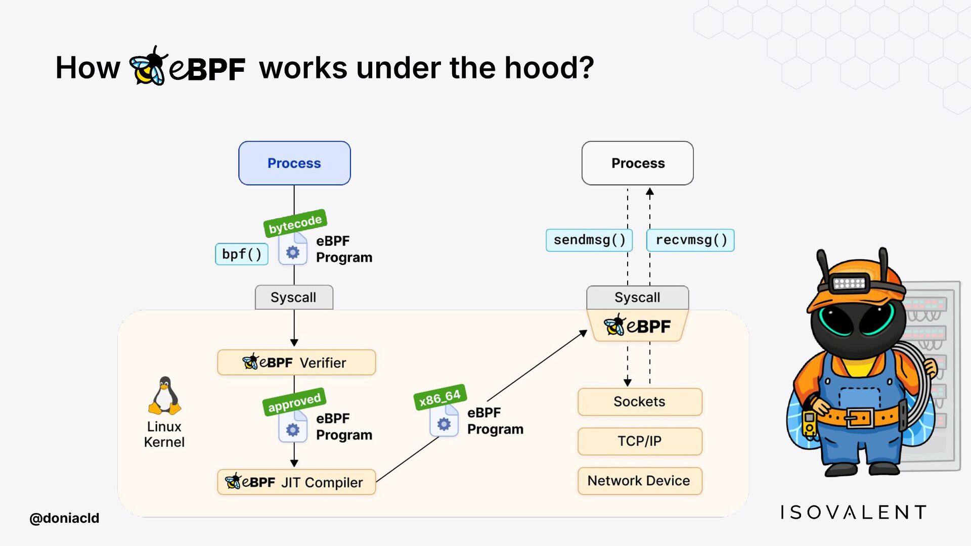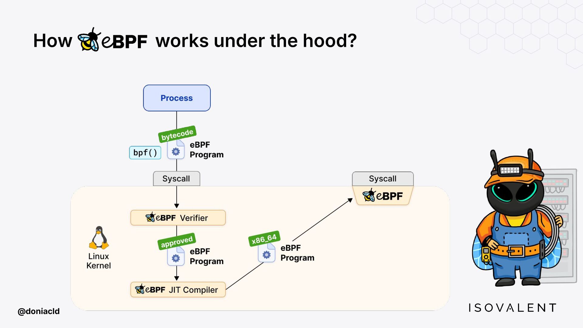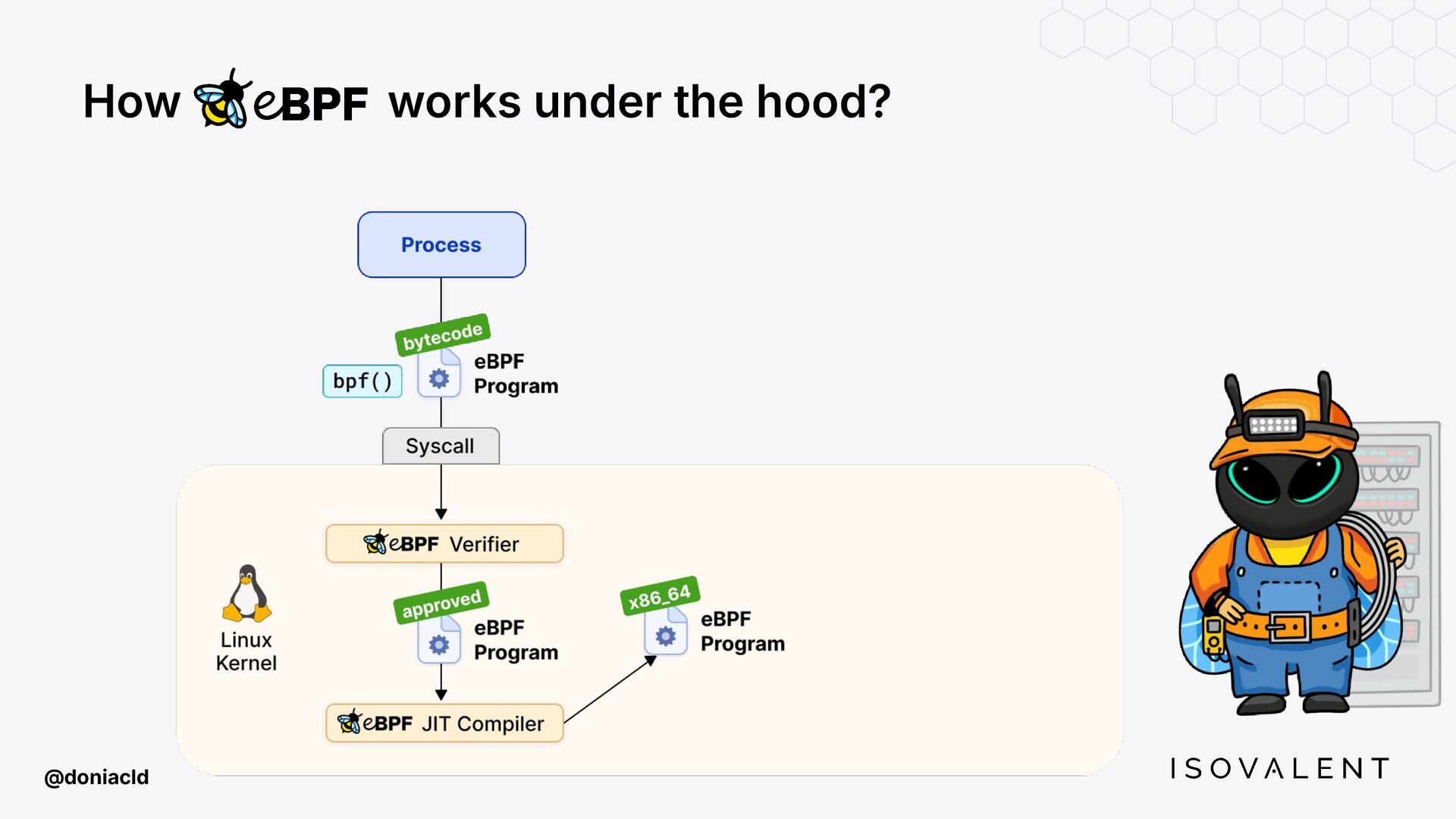fast programs in the Linux kernel • You can use it for: ◦ 🔍 Tracing (e.g. file open events) ◦ 📊 Observability (e.g. counting packets by IP ◦ 🛡 Security (e.g. dropping packets with XDP ◦ 🌐 Networking (e.g. packets routing with Cilium)