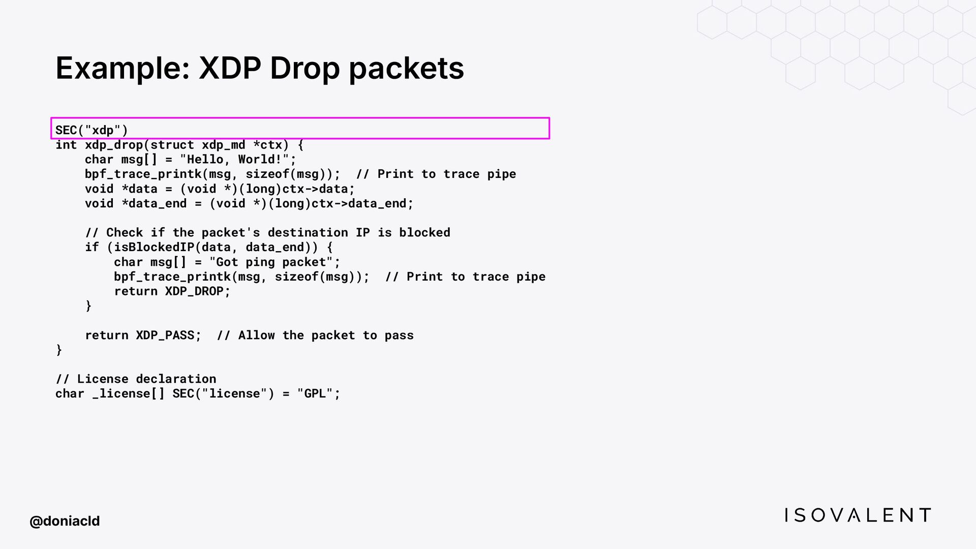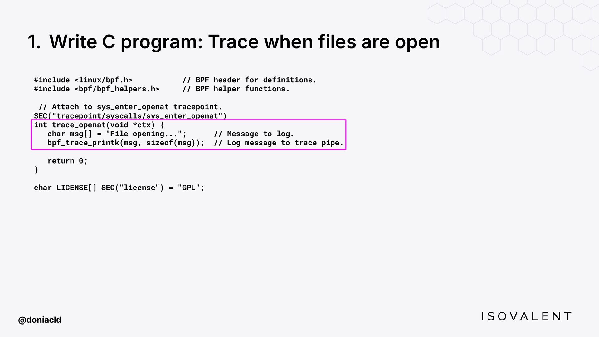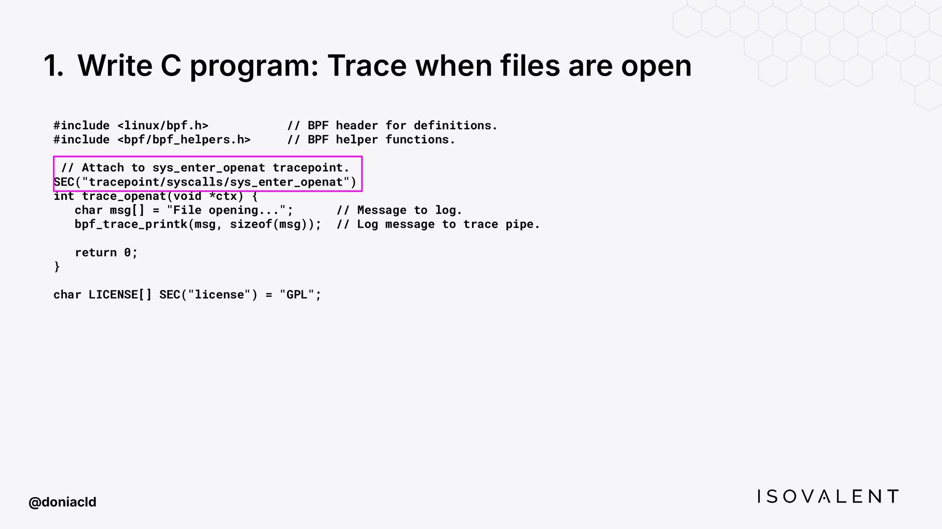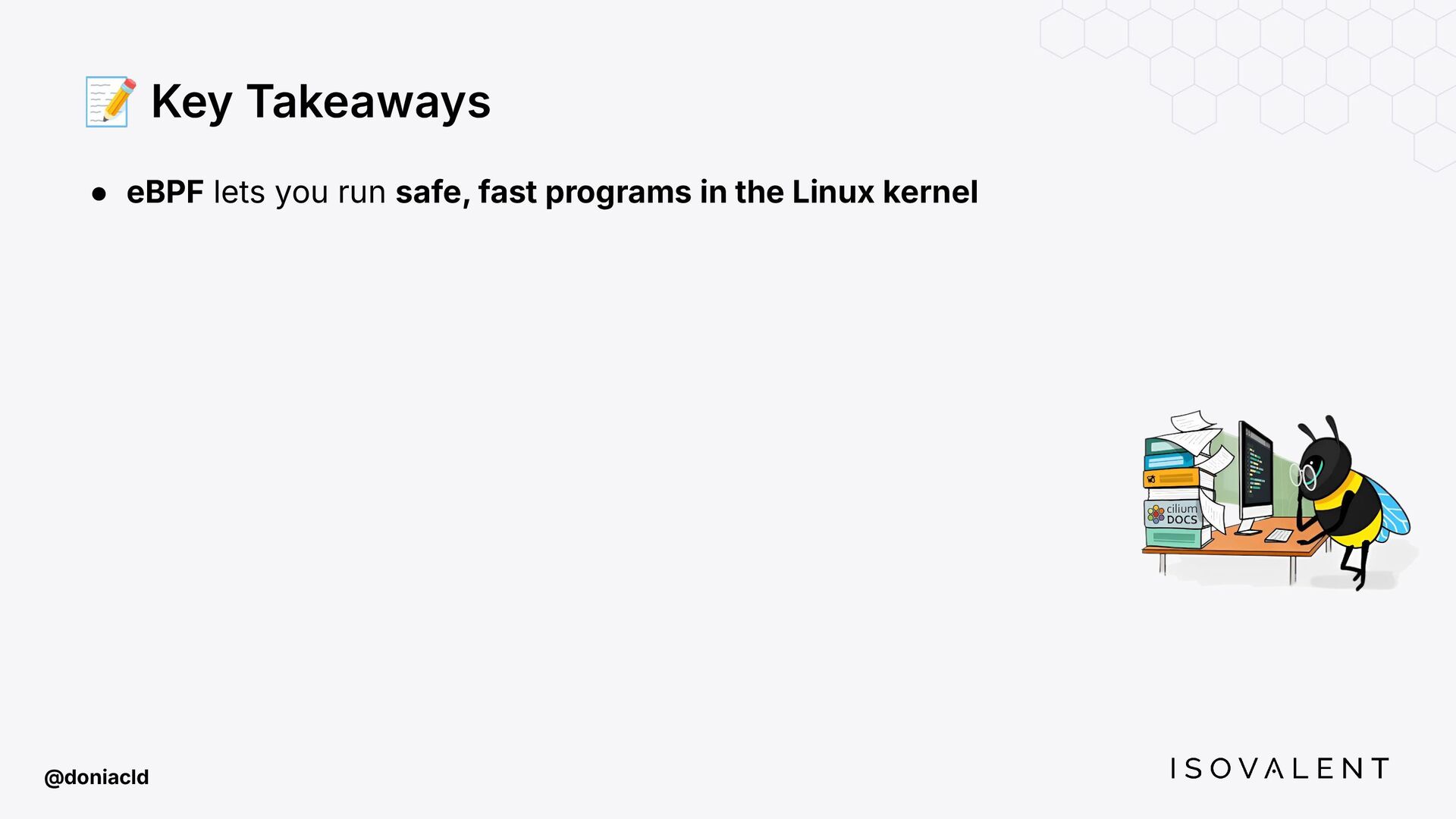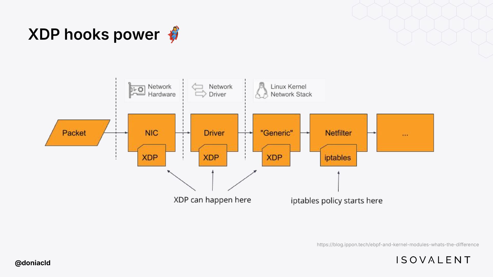 fast programs in the Linux kernel • You can use it for: ◦ 🔍 Tracing (e.g. file open events) ◦ 📊 Observability (e.g. counting packets by IP ◦ 🛡 Security (e.g. dropping packets with XDP ◦ 🌐 Networking (e.g. packets routing with Cilium)