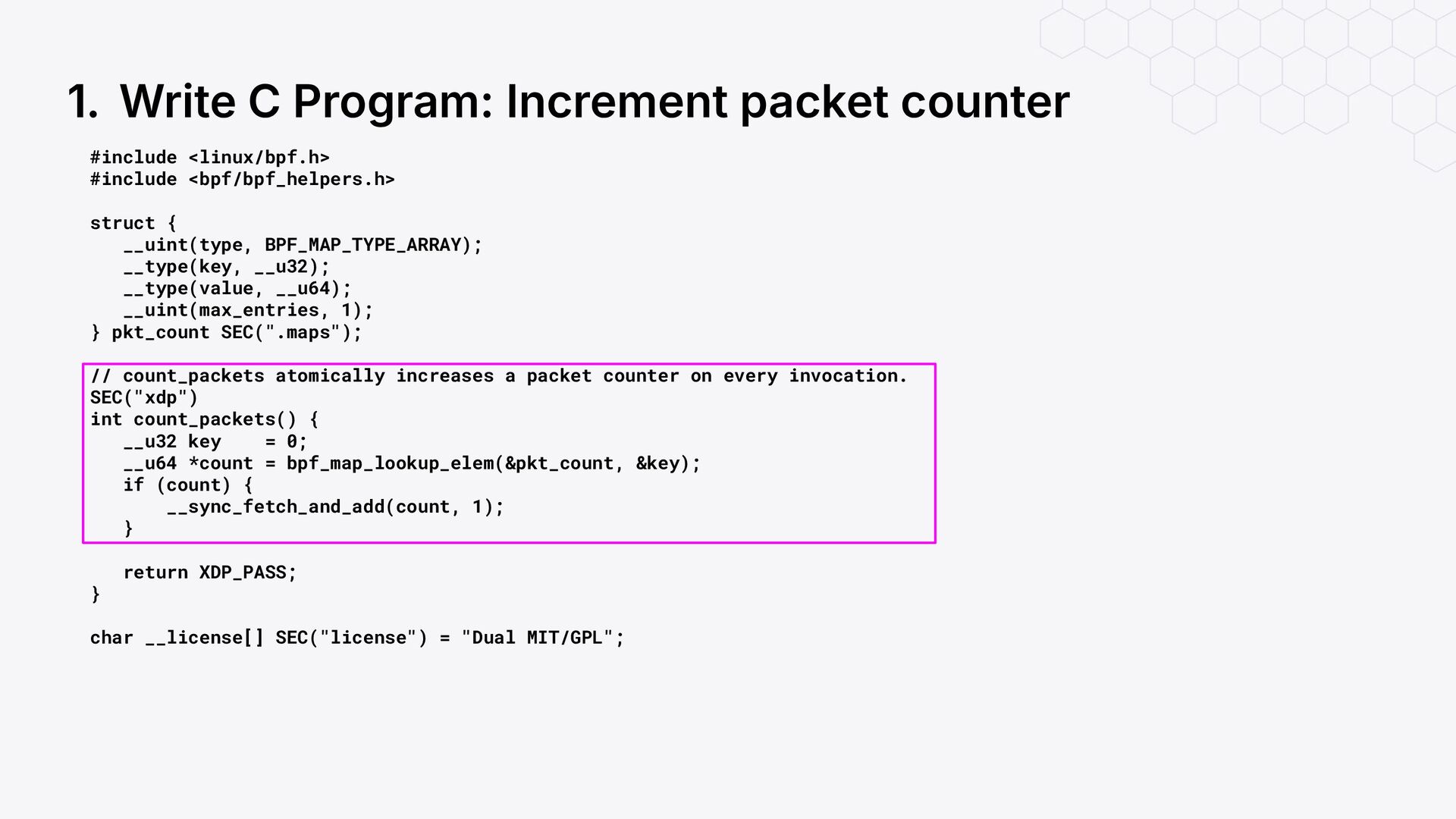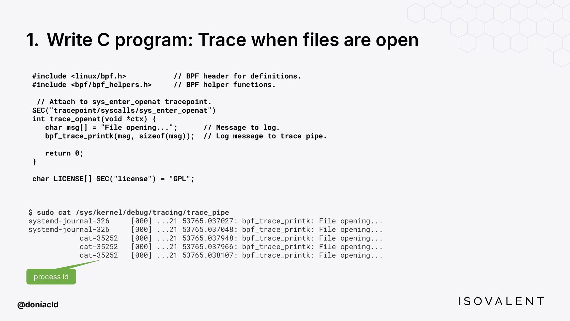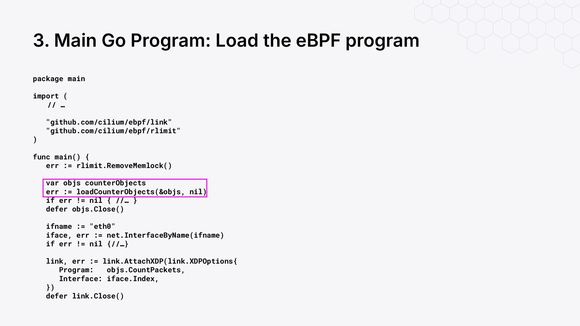 after they have been loaded into the kernel. //type openfilePrograms struct { TraceOpenat *ebpf.Program `ebpf:"trace_openat"` } Objects to manipulate // openfileObjects contains all objects after they have been loaded into the kernel. type openfileObjects struct { openfilePrograms openfileMaps openfileVariables } //go:generate go run github.com/cilium/ebpf/cmd/bpf2go openfile openfile.c eBPF program bytecodes