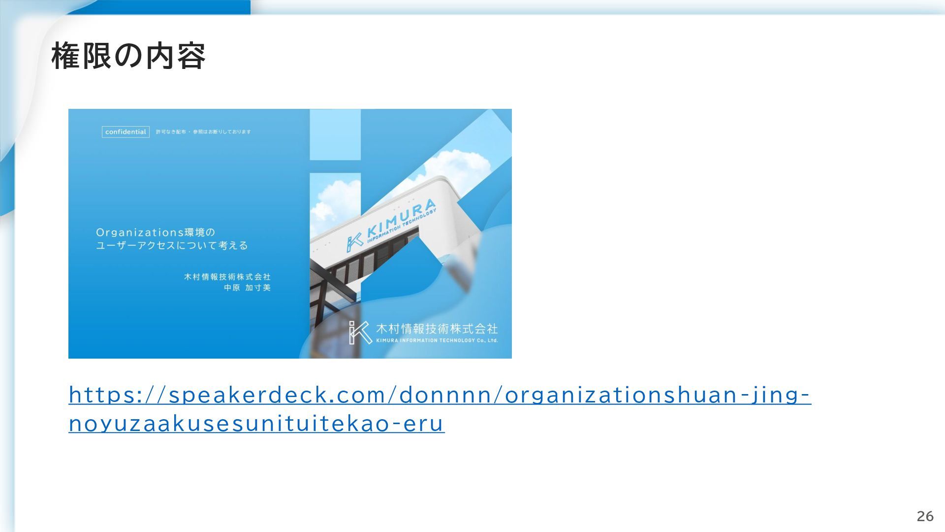 権限の内容 https://speakerdeck.com/donnnn/organizationshuan-jing- noyuzaakusesunituitekao-eru 26 ダ イ ア グ ラ ム