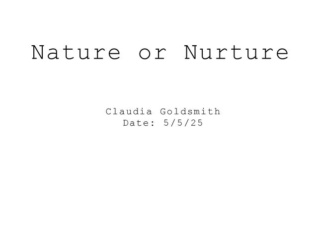 Nature or Nurture Claudia Goldsmith Date: 5/5/25