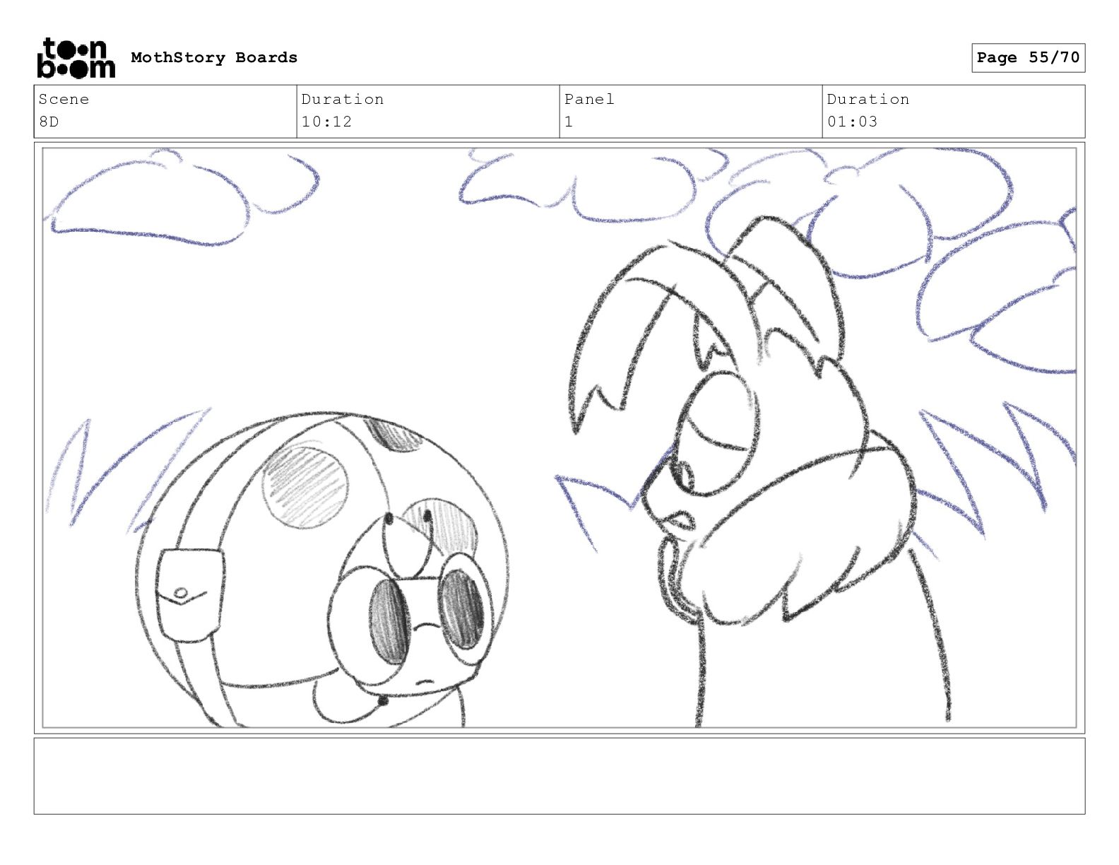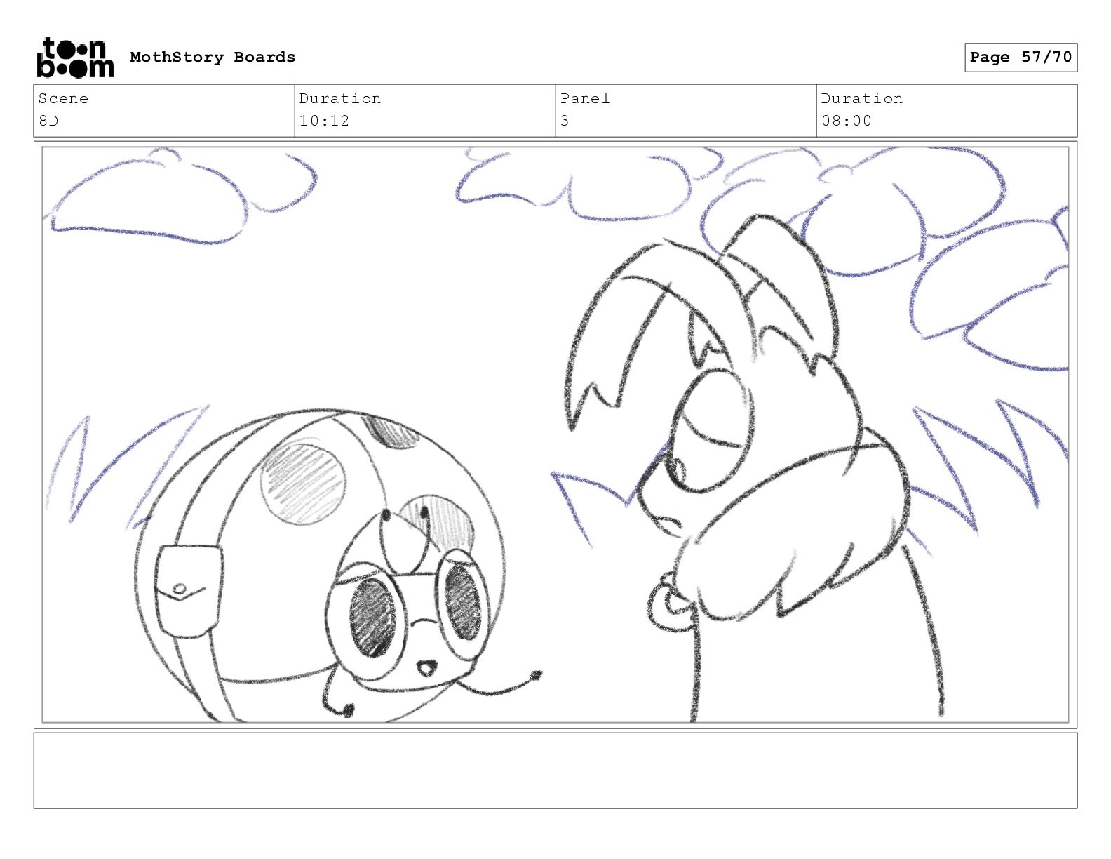 Scene 8D Duration 10:12 Panel 1 Duration 01:03 MothStory Boards