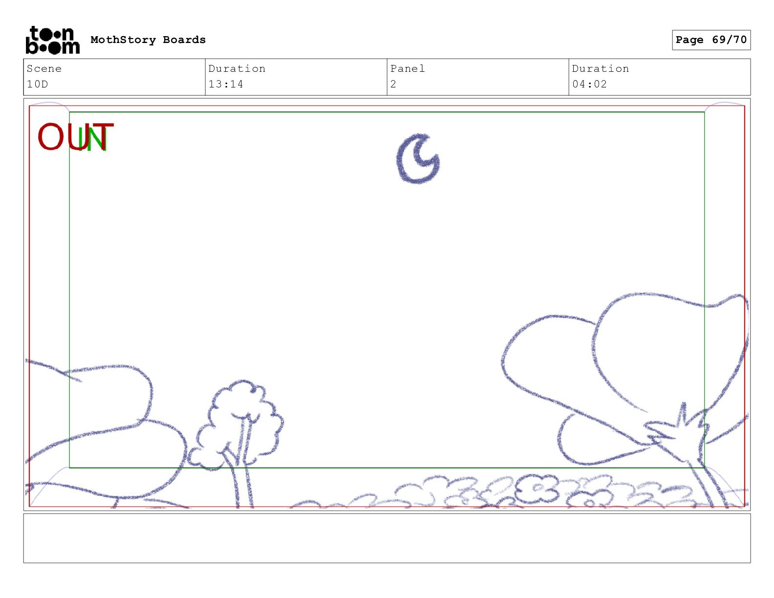 Scene 10D Duration 13:14 Panel 2 Duration 04:02 MothStory Boards