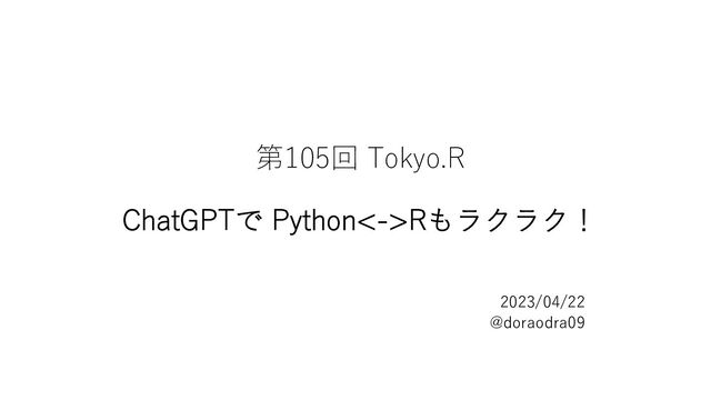 第105回 Tokyo.R ChatGPTで Python<->Rもラクラク! 2023/04/22 @doraodra09