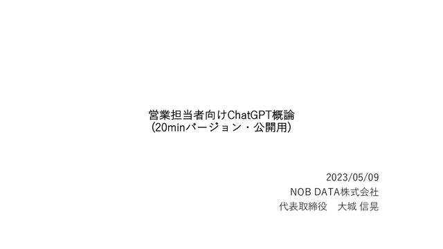 営業担当者向けChatGPT概論 (20minバージョン・公開⽤) 2023/05/09 NOB DATA株式会社 代表取締役 ⼤城 信晃