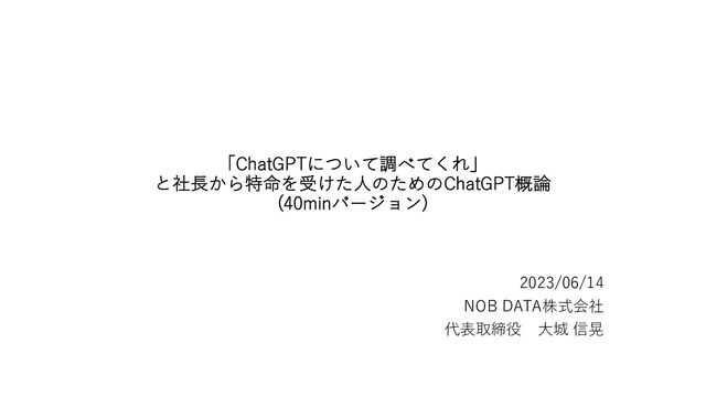 OpenAI社が開発した⼤規模⾔語モデル(LLM) ChatGPTはわずか2ヶ⽉で1億ユーザーを超える勢い • ChatGPTは⾃然⾔語だけでなく、プログラミング⾔語にも精通し、しかも従来のチャットボットとは異なり、 意⾒の要約や分類、説明の難易度調整、解釈、分析、物語の制作、ロールプレイなど、あたかも「チャットの向 こう側に⼈がいるかのように」振る舞う • ⽇本国内の⾔語学者も「何が起きているのかよく分からない」性能が出ており、10年登場が早い技術の可能性も ある。( 本来は「次に来る⾔葉を予測」するための⾔語モデル ) • ビジネスにおいてはゴールドマンサックスのレポートではホワイトワーカーを中⼼に3億⼈の仕事を奪い、世界 のGDPを7%(800超円規模)の経済を引き上げると予想。国内ではパナソニックコネクト社がいち早く活⽤に舵を 切る。 • 国によって規制論、活⽤論の意⾒が異なりヨーロッパは慎重スタンス。アメリカ・⽇本は活⽤スタンス。特に⽇ 本においては先⽇OpenAI社のサム・アルトマンCEOも来⽇し、岸⽥⾸相に⾯会。画像解析APIの世界先⾏リリー ス、⽇本の拠点開設など7つの提案を実施 • 企業の経営者やDX推進の担当者もChatGPTの動向は特にこの半年は注視すべき。また実際にChatGPTを様々な 場⾯で利⽤を模索することは⼤きなチャンスとなり得る。(逆に、利⽤しないと⼤きな脅威にもなる) • 多くのChatGPT製品が巷に溢れているが、まず触るべきは公式のOpenAI社のWebサービス。また⽉額$20課⾦ で使えるChatGPT-4とプラグインは是⾮触っていただきたい。 • 情報の⼀次ソースとしてはtwitter、そして何より「⾃⾝で実際に触ってみる興味関⼼・⾏動⼒」が最重要