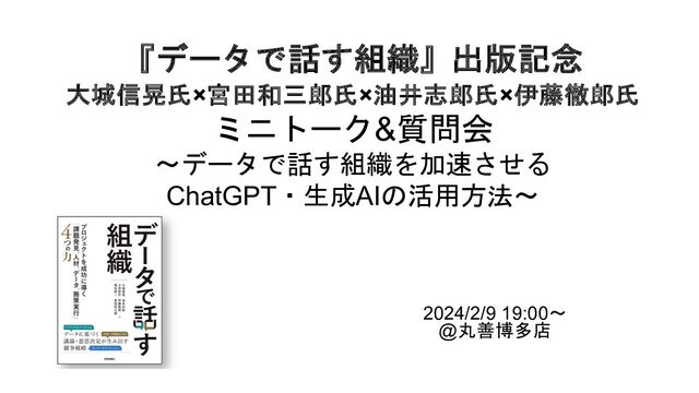 DATA(株)を福岡にて創業。2010年の データサイエンスの黎明期から現在まで,ビジネスにお けるデータ活用を一貫して行っている。現在は主に地方 のインフラ企業(電力・鉄道・通信,他)にてDX推進とい う文脈で各社に自走できる分析チームの立ち上げに関す る伴走支援を,東京エリアを中心とする企業にて ChatGPT等のLLM技術を応用したサービス開発・業務活 用支援を行っている。 著書:『AI・データ分析プロジェクトのすべて』(技術 評論社),『データ分析失敗事例集』(共立出版),他 2冊 大城信晃