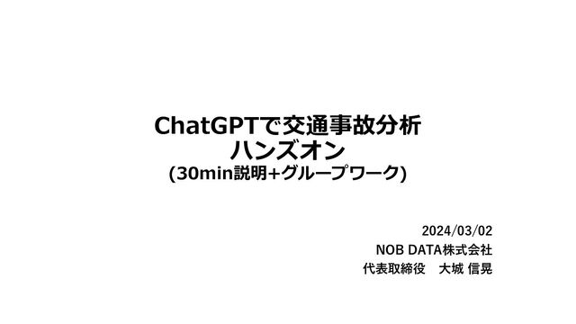 「ここまでの結果を元に考察と、事故防⽌のための対策案を表形式でいくつか 考えてください」と指⽰をだしてみてください(5分) • またご⾃⾝が気になる観点の切り⼝で質問してもOKです • なお、ここから先は相互に切り⼝や視点を変えつつChatGPTと対話しつつ、 考察を深めて対策を考えることになります (各⾃チームのワークパート。最後に結果を3-5分くらいで発表) • ご⾃⾝の初期仮説と⽐較しつつ、違和感がないかなども検証してみてください (ChatGPTの結果が必ずしも正しいわけではないので、⾃分の感覚も⼤切) • 確らしさを確認するために、エビデンスとなる数値を併せて出してもらう、 なども有効です