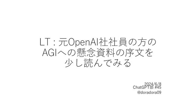 によって、私は彼らの中にいることになった。数年前、こ れらの⼈々は気が狂っていると嘲笑されたが、彼らはトレ ンドラインを信頼し、そのおかげで過去数年間の AI の進 歩を正しく予測することができた。 これらの⼈々が今後数年間についても正しいかどうかはま だ分からない。 しかし、彼らは⾮常に賢い⼈々であり、私がこれまでに 会った中で最も賢い⼈々であり、このテクノロジーを構築 している⼈々である。彼らは歴史の中で奇妙な脚注になる かもしれないし、シラードやオッペンハイマー、テラーの ように歴史に名を残すかもしれない。彼らが未来を少しで も正しく⾒ているなら、私たちは激しい旅をすることにな るでしょう。 私たちが⾒ているものをお話ししましょう。