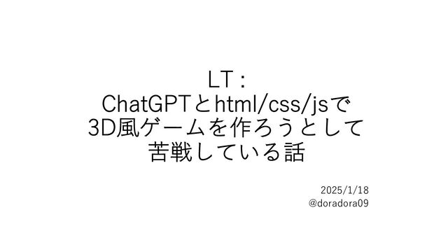 LT : ChatGPTとhtml/css/jsで 3D⾵ゲームを作ろうとして 苦戦している話 2025/1/18 @doradora09