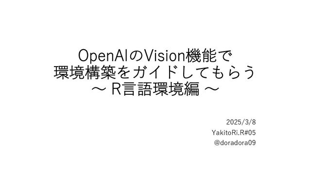 OpenAIのVision機能で 環境構築をガイドしてもらう 〜 R⾔語環境編 〜 2025/3/8 YakitoRi.R#05 @doradora09