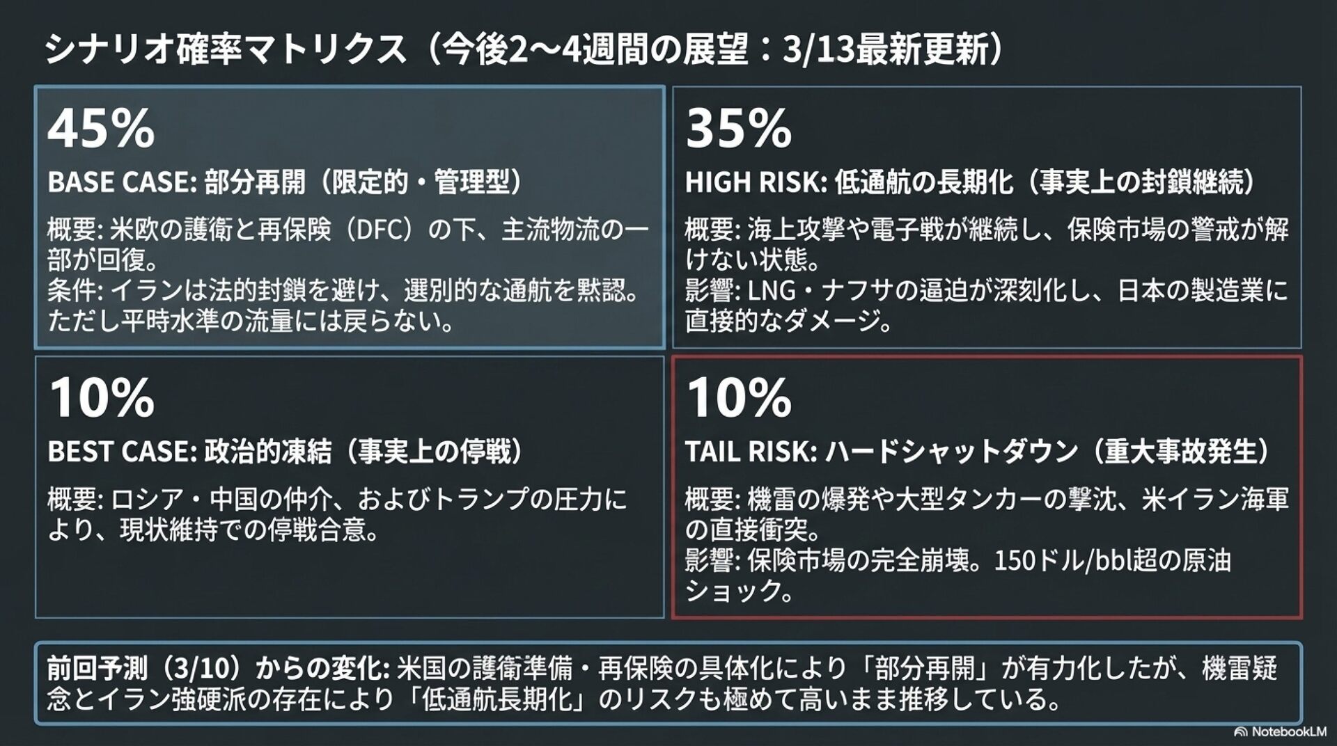 イラン情勢のChatGPT+Grok+NotebookLMの簡易予測です( 2026/3/13金 9:00現在 )