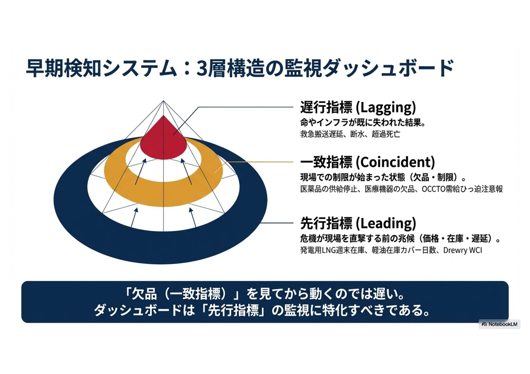 推奨:国内需要の約2ヶ月分の川下在庫があっても、紅海迂回による遅延が重なると、医療消耗品で供給逼迫・欠品リスクが高まる。 6. ಛʹ༏लͳϖʔδ p.5 λΠϜɾπʔɾϑΣΠϥʔ ࠷࣮తͰ͢ɻ୭͕ɺͲͷॱ൪ͰɺԿͰةݥҬʹೖ Δ͔ΛҰͰཧղͰ͖·͢ɻ p.5ʮશମ૾ɿλΠϜɾπʔɾϑΣΠϥʔʢ࣌ؒΕϚο ϓʣʯ 7.