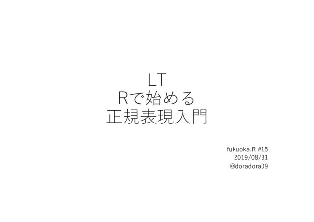 LT Rで始める 正規表現⼊⾨ fukuoka.R #15 2019/08/31 @doradora09