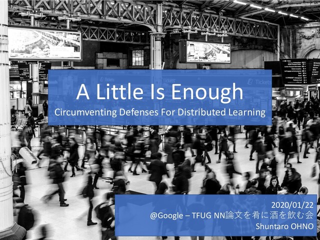 Slide for "TFUG - Neural network paper with alcohol". Talk about the security of distributed learning.
