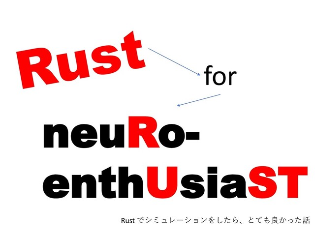 このライトニングトークは、「なんか格好よさそうだか ら」という理由でオライリー本をAmaz〇nしてRustを始 めてみた初心者が、本職の神経回路シミュレーションで Rustを活用してみたところ「これめっちゃいいやん」と いうことに気付き、これはぜひ広めなければならないと 思ったものの、神経回路シミュレーションなんてやって る人間はあまりにも少ないという世界の真理にくじけ、 いやしかし、この利点は一般的なマルチなエージェント を扱うシミュレーション全般に言えることだという事実 に奮起し、「やはり布教しなければならぬ!」という使