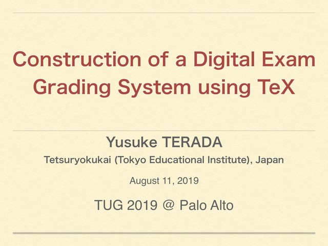 an exam. 2. Scan the answer sheets into PDF. 3. Sort and correct the scanned-PDF with DyNAMiKS. 4. Split them and generate grading forms by TeX. 5. Perform grading with iPad Pro + Apple Pencil + GoodNotes. 6. Read scores by DyNAMiKS. 7. Restore answer sheets and overprint scores by TeX. 8. Generate analysis sheets by TikZ + tcolorbox. 9. Print sheets and return them to students in paper.