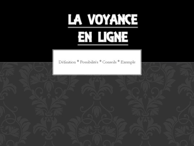 nommé de voyant les personnes pouvant voir par plusieurs moyens les évènements futurs mais aussi passé. • Les voyants interprètent des signes qui ne sont à la porté que des initiés. DÉFINITION : VOYANCE