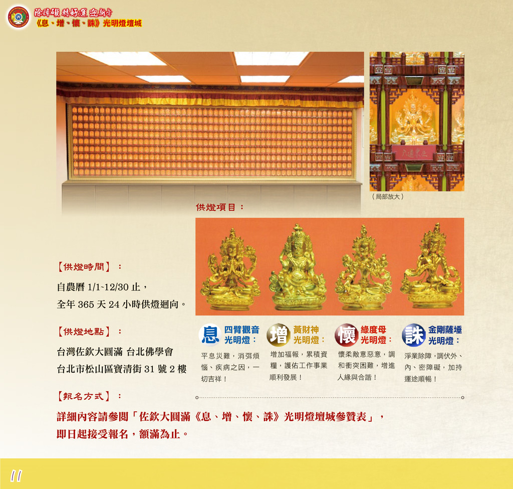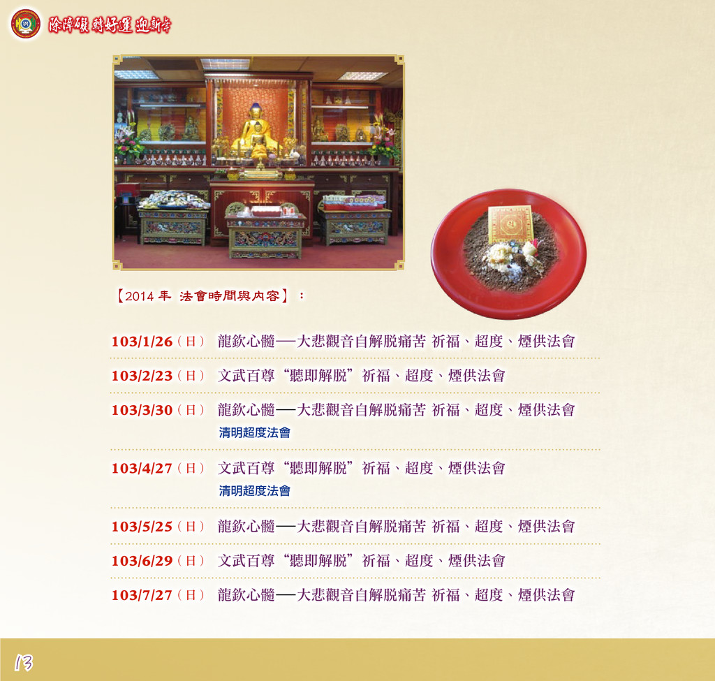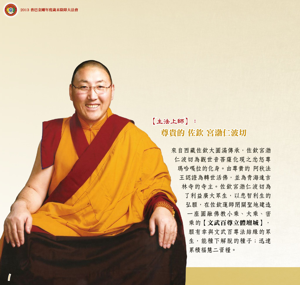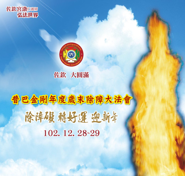 分所製之兩小時環香。大眾於日常做功課時可 供香祈願 --「以此香供養十方一切諸佛賢聖, 普薰法界一切眾生,共證無上菩提」;或是於 居家室內燃香,清淨內外,消除障礙! • 歡迎預先報名,即日起至 102.12.27 日止, 102.12.28~102.12.29 請至法會現場服務台報名。 • 請參見「佐欽 普巴金剛年度歲末除障大法會 參贊表」。 • 法會相關訊息,請參考佛學會網站 http://www.dzogchen-gongbo.org 普巴金剛杵項鍊 於普巴金剛法會密壇城中供奉兩日,圓滿裝臟開光加持, 可隨身佩帶,除障護身長保平安吉祥。 ※ ( 普巴金剛杵項鍊於 102.12.29 法會圓滿,密壇城開啟 後,方能請下與功德主結緣。) 謝謝您! (結緣品以實物為準) (結緣品以實物為準)