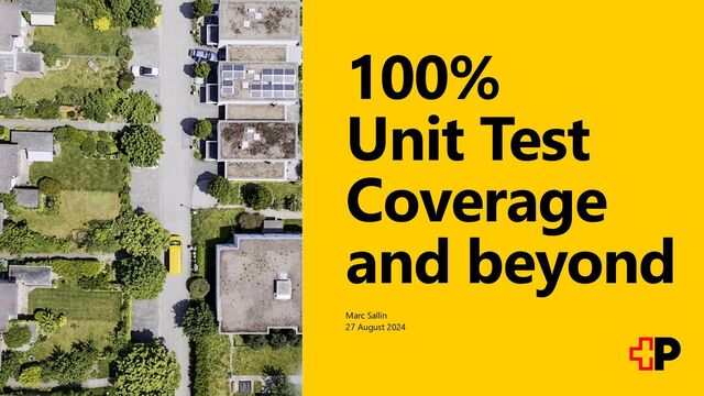 Premise: Tests do not proof the absence of defects It follows: Even 100% test coverage doesn’t proof the absence of defects Conclusion: it follows that 100% isn’t worth it 27. August 2024 Swiss Post – 100% Unit Test Coverage – Marc Sallin – C1 Public 8