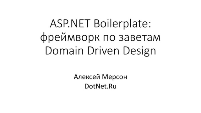 Суть Domain Driven Design лежит вне технической плоскости, а применять его можно в любом проекте, независимо от стека и масштаба. Однако если проект большой, сложно обойтись без применения тактических паттернов DDD, таких как репозиторий, сервис, спецификация и др. Что же делать, если готовых наработок нет, а дедлайн не за горами? На помощь приходит ASP.NET Boilerplate, фреймворк для разработки приложений, в котором уже реализованы лучшие практики применения DDD. Поговорим не только о фреймворке в целом, но и об успешном опыте его использования в реальном проекте.