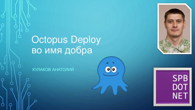 Большинство .NET-разработчиков не заботятся о жизни продукта после успешного прохождения CI сервера. Но ведь это далеко не конец, следующий шаг не менее важен и сложен. Распространение продукта с учётом всех окружений, хостов и версий - именно об этом мы и поговорим. И нам поможет не сойти с ума замечательный инструмент Octopus Deploy. В ходе доклада Анатолий покажет как за 5 минут развернуть полноценную систему управления версиями и продемонстрирует базовые возможности по контролю жизненного цикла приложения.