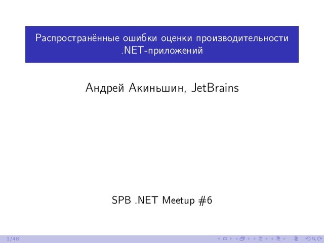 Изо дня в день многие .NET-разработчики сталкиваются с проблемами производительности в своих проектах. Для их решения необходимо уметь корректно замерять время, чтобы иметь возможность сравнить эффективность разных подходов. Если речь идёт о минутах или часах, то такие замеры можно выполнять «на глаз». Если речь идёт о секундах, то с задачей хорошо справится ваш любимый профайлер. Но если речь идёт о миллисекундах, микросекундах или даже наносекундах, то у вас могут возникнуть проблемы. Замеры коротких промежутков времени — очень сложная задача, многие программисты не умеют решать её правильно. В этом докладе я расскажу о наиболее распространённых ошибках и о том, как их можно избежать.