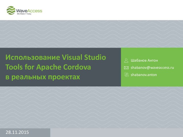 Доклад будет о впечатлениях C#-веб-программиста от кроссплатформенной мобильной разработки с применением Visual Studio tools for Apache Cordova. Я расскажу немного о самой платформе Apache Cordova и ее преимуществах и недостатках, а также покажу какую работу проделал MS чтобы адаптировать процесс разработки JS-приложений для смартфонов к использованию в Visual Studio.
