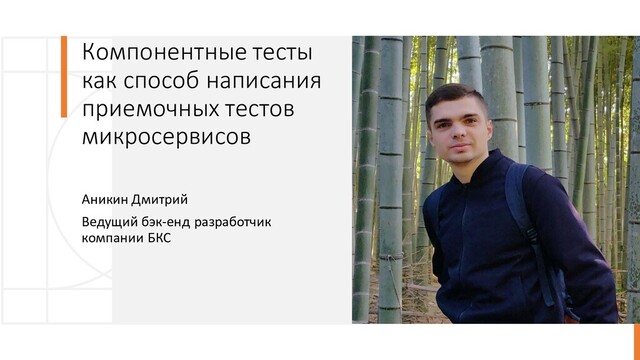 Дмитрий расскажет про то, что такое компонентные тесты в контексте тестирования микросервисов, с чего вдруг им стали нужны эти компонентные тесты, про то как тестируются микросервисы и немного про пирамиду тестирования. Будет больше делать упор на личный опыт, с какими трудностями столкнулись и немного коснется теории.