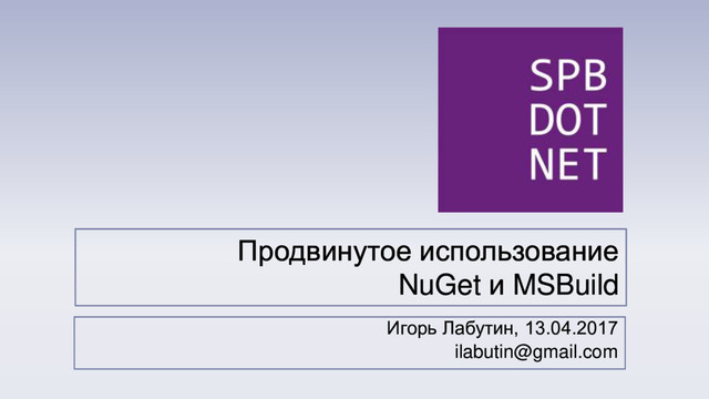 NuGet пакеты используют все. А рано или поздно приходится собрать такой пакет самому. Хорошо если это просто несколько DLL собранных вместе. Встречаются и более сложные случаи — несколько целевых версий фреймворка, специальные скрипты установки и вдобавок расширения MSBuild. Если вы разработчик библиотеки, публикуемой на nuget.org, или вы просто захотели поделиться чем-то полезным с коллегами, выложив ваш пакет на внутренний NuGet-сервер — вам нужно владеть навыками создания NuGet пакетов и помнить о тонкостях которые могут вас подстерегать. В докладе рассмотрим полный цикл создания NuGet пакета и особое внимание уделим «продвинутым» возможностям — скриптам и встраивание в MSBuild.