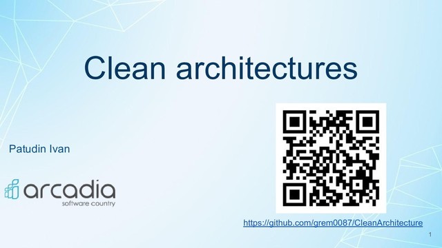 Clean Architecture is a compilation of principles and requirements. Most importantly from: • Screaming Architecture by himself • Hexagonal Architecture (a.k.a. Ports and Adapters) by Alistair Cockburn • Onion Architecture by Jeffrey Palermo 12