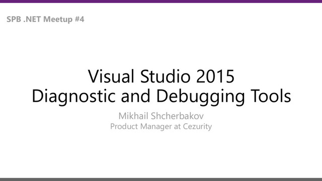 Рассмотрим на примерах новые средства диагностики и профиляции кода в Visual Studio 2015, поговорим о том, что нового появилось в отладчике и что еще хотелось бы в нем видеть. Посмотрим на магический IntelliTest и разберемся что у него под капотом и как он «изучает код .NET»