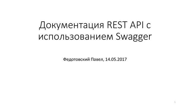 Документация является важной составляющей REST API – чем она удобнее и понятнее, тем меньше времени тратят разработчики, использующие ваше API. Хорошая документация упрощает жизнь всем – разработчикам/тестерам/клиентам. В докладе Павел расскажет про его опыт работы со Swagger – популярным подходом к спецификации REST API: