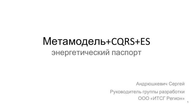 В докладе представлен опыт реализации CQRS+ES с метамоделью на примере задачи формирования энергетического паспорта предприятия, которая перемолола три различные системы за 8 лет. Рассмотрена микросервисная архитектура системы, способы повышения производительности, решение проблем согласования изменений ES и проекций, а так же выводы применения CQRS на практике.