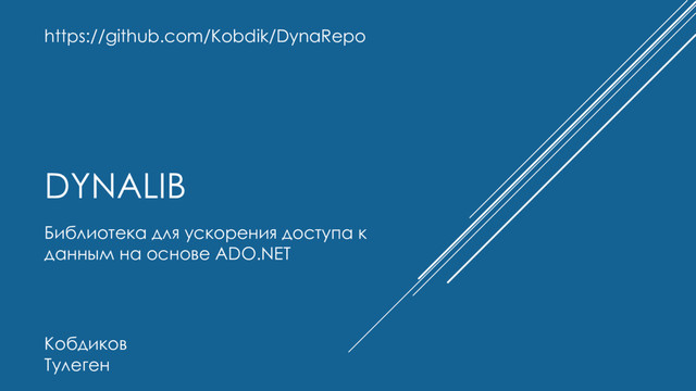 Для решения проблем с производительностью EF, а точнее, для того чтобы не использовать его вовсе, была разработана библиотека DynaLib, главная роль в которой принадлежит классу DynaObject, который умеет читать параметры из входного потока, вызывать хранимые процедуры на стороне БД, непосредственно работать с выбранной реализацией IDataReader, записывая данные из него в выходной поток в binary, json или xml форматах. При этом не приходится непосредственно писать в коде какие поля или параметры читать, какие будут записаны в поток. Скорость работы библиотеки — как если написать вручную код на основе выбранной реализации IDataReader.