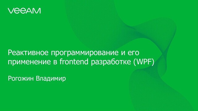 Владимир расскажет нам о реактивном программировании, познакомит нас с манифестом реактивных систем, расскажет чем отличаются “горячие” и “холодные” последовательности. На примере WPF-приложения покажет, чем может быть полезно реактивное программирование при разработке frontend’а, а также, чем может помочь библиотека ReactiveUI.