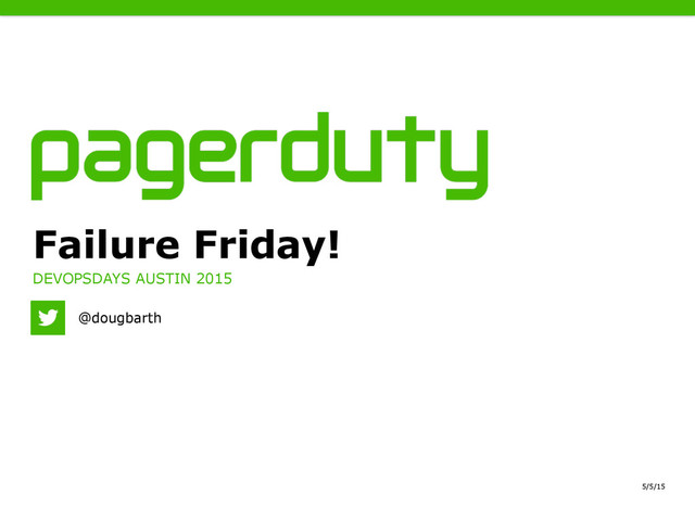 In this talk, we will discuss how PagerDuty started injecting failure into our production systems with minimal effort and the full support of the development teams. We will discuss why you should start proactively injecting failure and the exact steps you can take. We will go over the importance of setting an agenda, keeping a log of the actions taken, and todos that were uncovered. We will talk about why I think your metrics should be linkable, and why you should leave your alerts on during these planned failures. Finally, we will talk about the benefits your company will get from causing all this chaos. At the end of this talk, I hope to have inspired you to go start breaking your production systems, on purpose.