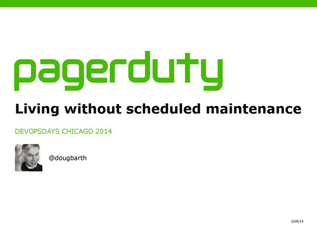 An ignite talk I gave at DevOpsDays Chicago 2014. Here's 4 strategies for avoiding scheduled maintenance.